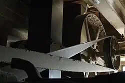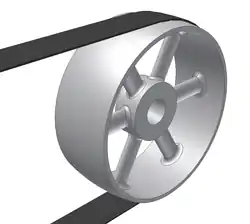 Um zu verhindern, dass der Riemen von den Scheiben läuft, kann die Lauffläche der Scheibe in geringem Maß[2] nach außen gewölbt (ballig) ausgeführt werden; der Riemen zentriert sich so von selbst (später genormt in DIN 111:1982-08).[3] Alternativ kann der Riemen auch mittels Führungsgabeln in der gewünschten Position gehalten werden.
