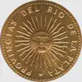 Ab April 1813 ist die Verwendung der Inkasonne/Maisonne auf Münzen nachgewiesen. Die Sonnenscheibe mit einem Gesicht, umgeben von Sonnenstrahlen, symbolisierte in der Inkamythologie den Sohn Inti des göttlichen Schöpfers Viracocha. Die erste argentinische Münzen dienten später als Vorlage für die Sonne in der Flagge.