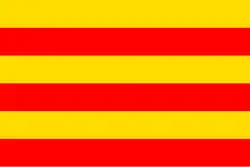 Flagge von Baden (1855 bis 1891)Erst der zunehmende Brauch anderer Staaten Europas und des Deutschen Bundes Landesflaggen zu zeigen veranlasste 1855 die großherzogliche Regierung für die eigenen Konsulate eine Flaggenform vorzugeben, wobei es den Konsuln freigestellt blieb, ob sie diese verwendeten, es handelte sich nur um eine Vereinheitlichung für den Fall, dass überhaupt Flagge gezeigt wurde.[6] Diese Form scheint sich auch allgemein durchgesetzt zu haben, während bei der Schifffahrt teilweise weiterhin Varianten verwendet wurden. So wurde auch in dem 1878 erschienenen Werk von Gritzner die badische Landesflagge mit einem roten waagerechten Streifen über einem gelben Streifen dargestellt.[7]
