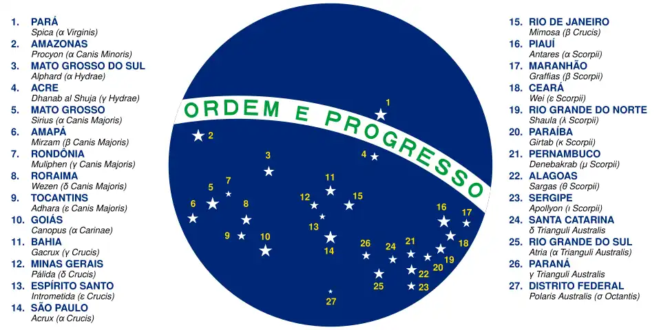 | 16 | Piauí | α Scorpii (Antares) | Skorpion (Scorpius) | 1 |