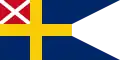 1905 bis zur Gegenwart | Örlogsflaggan, die Militärflagge, die auch als Gösch (örlogsgösen) bei der schwedischen Marine genutzt wird | Schwedische Nationalflagge als gezungter Doppelstander im Verhältnis SV 10:20 (4–2–4):(5–2–5–8) |