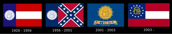 Ein weiterer Bundesstaat, der sich in der Symbolik stark an die Flaggen der Südstaaten anlehnt, ist Georgia. Im Jahre 1956 wurde ebenfalls die Kriegsflagge der Konföderation in die neue Staatsflagge eingebunden. Dies führte im Laufe der kommenden Jahre zum Teil zu heftigen Kontroversen bei der afro-amerikanischen Bevölkerung, die eine Verbindung zu den Südstaaten ablehnten. Der Streit mündete im Jahre 2001 in einer Neugestaltung der Flagge, in der die Konföderationsflaggen als „Einige von Mehreren“ in einem geschichtlichen Zusammenhang dargestellt wurden. Auf Grund anhaltender Meinungsverschiedenheiten und einer Veränderung in den politischen Strömungen wurde die Staatsflagge im Jahre 2003 nochmals geändert, indem man sich nun stark an der ersten Nationalflagge der Konföderation „Stars and Bars“ orientierte.