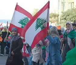 Teilweise werden die Farben Weiß und Rot mit dem Symbol für die zwei sich befehdenden Stämme der Jemeniten und Kayssiten interpretiert, welche die libanesische Gesellschaft zwischen 634 und 1711 in zwei Gruppen (Christen und Muslime) gespaltet haben.