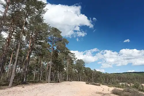 Durch die starke Trockenheit und Nährstoffarmut sowie historische Streunutzung haben sich hier Flechten-Kiefernwälder ausgebildet. Atmosphärische Stickstoffeinträge und die heute fehlende Streunutzung führten zum Rückgang dieser nährstoffarmen Wälder.[4][5][6] Sie sind aufgrund ihrer Seltenheit von besonderer landesweiter Bedeutung.