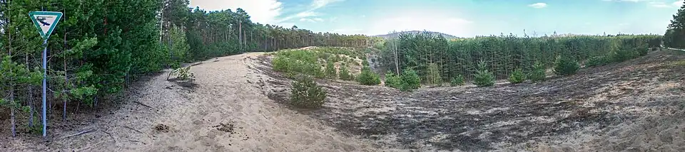 Die vorgefundene Vegetation entspricht in ihrer Seltenheit derjenigen der hiesigen Tierwelt und hat sich an die extremen Lebensbedingungen angepasst. Im Sommer haben Biologen hier am Boden Temperaturen von bis zu 70 Grad Celsius gemessen.[7] Hier kommen die Vogelarten Ziegenmelker und die Heuschreckenart Sandschrecke vor.