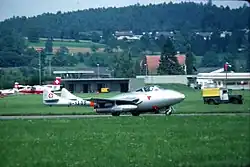 Bis 1974 war bei zwei Vampire Trainern (J-1205, J-1203) die Doppelsteuerung entfernt worden und die Flugzeuge waren mit einem Operateur-Sitzplatz zu EKF-Zwecken umgerüstet worden.[1]