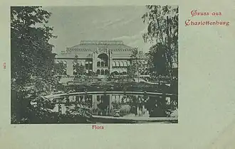 Die Flora befand sich in der Nähe des Schlosses Charlottenburg zwischen der Spree, dem Luisenplatz, der Wintersteinstraße und der Brauhofstraße. Sie wurde von 1872 bis 1874 nach Entwürfen des Architekten Johannes Otzen erbaut. Bauherr war die Aktiengesellschaft Flora. Die Eröffnung erfolgte am 22. Mai 1874.[1]