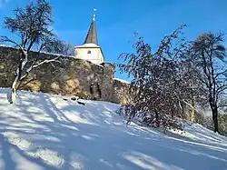 Auf dem Berggipfel stehen ein kleines historisches Häuserensemble, ein Gasthof und eine der hl. Flora und dem hl. Kilian geweihte, in den Jahren 1511–1515 erbaute einstige Wehrkirche, die mehrere Jahrhunderte lang das kirchliche Zentrum der Gegend war.
