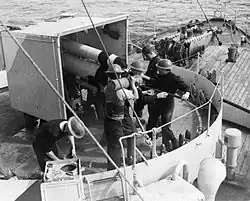 - der Einbau eines Hedgehog-Werfers ab Frühjahr 1943, der die Bekämpfung von U-Booten aus einer Distanz bei fortlaufender ASDIC-Ortung erlaubte;