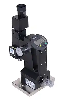 Alternativ hierzu lassen sich die Abweichungen der Maschinenführung auch über die mit dem linearen Messsystem des Prüfgeräts verbundene Digitalanzeige ermitteln. Ist das Schnittbild des Drahtes im Okular nicht deckungsgleich, wird der Messwert der Anzeige auf Null gesetzt. Durch Verschieben des Prüfgerätes wird dann das Abbild des Drahtes im Schnittbild zur Deckung gebracht, wobei sich der genaue Wert der Abweichung der Führung von der idealen Geraden auf dem Bildschirm ablesen lässt.[1]