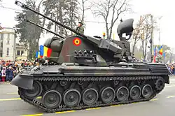 Im Rahmen der Unterstützung von NATO-Beitrittskandidaten hat die Bundeswehr 43 Gepard des alten Typs B2 ab November 2004 an Rumänien abgegeben.[39] Die Lieferung der ersten beiden Panzer aus den Beständen der Bundeswehr erfolgte allerdings bereits im Jahr 2000.[40] Mit der Stilllegung der Systeme bei der Bundeswehr verblieb die rumänische Armee als letzter Nutzer des Panzers innerhalb der NATO. Im Jahr 2023 verfügte Rumänien noch über 41 Systeme.[41]