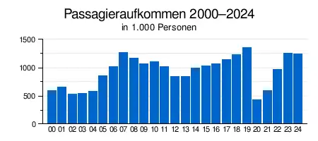 | Jahr | Fluggastaufkommen | Luftfracht (Tonnen) | Flugbewegungen |
