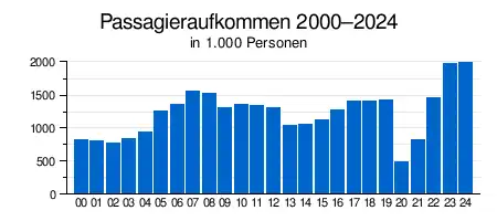 | Jahr | Fluggastaufkommen | Luftfracht (Tonnen) | Flugbewegungen |