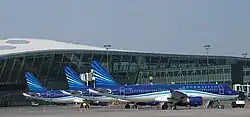 Der Flughafen Baku-Heydar Əliyev ist der Heimatflughafen und ein Drehkreuz der staatlichen Fluggesellschaft Azerbaijan Airlines. Diese fliegt (zusammen mit der virtuellen Tochtergesellschaft Buta Airways) von hier aus 49 Destinationen weltweit an.
