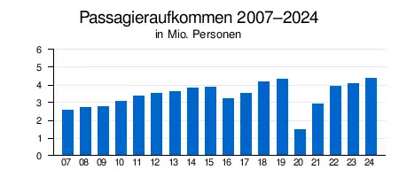 2024 wurden am Flughafen über 4,3 Millionen Passagiere abgefertigt.