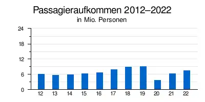 - ↑ Bei den Passagierzahlen der Jahre 1992 bis 2001 handelt es sich um die Verdoppelung der Zahl der abfliegenden Passagiere.