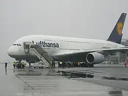 Ein A380 der Lufthansa zu Besuch am Flughafen Dresden
