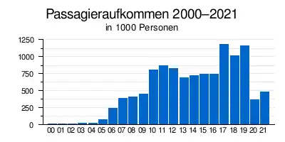 | Jahr | Passagiere | Flugbewegungen | Luftfracht (Tonnen) |