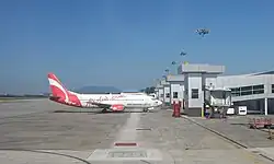 Das heutige Passagierabfertigungsgebäude befindet sich am selben Standort, wie das ehemalige Fluggastgebäude, nördlich der Piste. Davor befindet sich ein 55.000 Quadratmeter großes Vorfeld. Es bietet rund 15 Flugzeugen verschiedener Größen Platz. Die Einrichtungen der Flugsicherung und der Kontrollturm (Tower) sind östlich des Fluggastgebäudes angesiedelt.