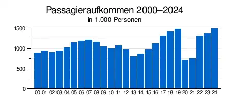 | Jahr | Fluggastaufkommen | Luftfracht (Tonnen) | Flugbewegungen |