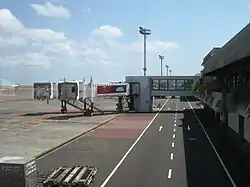 An beiden Gebäudeflügeln des Hauptgebäudes gibt es drei Flugsteige mit Fluggastbrücken und im Nebengebäude nochmals zwei Flugsteige. Zusätzlich gibt es zwei Flugsteige mit Bustransfer zum Flugzeug. An den drei Flugzeugparkpositionen am küstenseitigen Gebäudeteil können nur Flugzeuge bis zur Größe einer Boeing 767 parken. Alle anderen fünf gebäudenahen Stellplätze haben eine Größe von 72 mal 115 Meter und bieten damit Flugzeugen bis zur Größe einer Boeing 747 Platz.