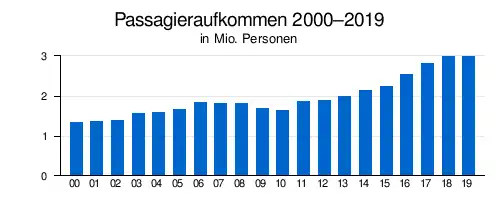 | Jahr | Fluggastaufkommen | Luftfracht (Tonnen) (mit Luftpost) |