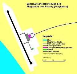 Die einzige Start- und Landebahn verläuft in Nord-Süd-Richtung und etwa 500 m parallel zur Küste. Das Hauptvorfeld, ein einen Kilometer langer Rollweg und das Abfertigungsgebäude befinden sich östlich der Piste.