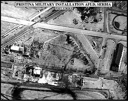Im Verlauf des Kosovokrieges erfolgten ab dem 22. April 1999 insgesamt zehn Luftangriffe auf den Stützpunkt durch F-15 „Strike Eagle“ der NATO. Dabei konnten die in der Flugzeugkaverne befindlichen Kampfflugzeuge nicht beschädigt werden.