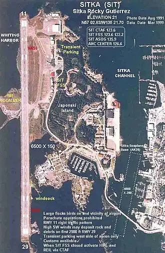- ↑ a b c SIT Airport Master Record. (PDF) FAA, abgerufen am 11. November 2023 (englisch).