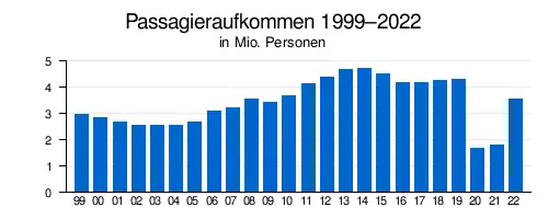 | Jahr | Fluggastaufkommen | Luftfracht (Tonnen) (mit Luftpost) |