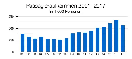 | Jahr | Fluggastaufkommen | Luftfracht (Tonnen) | Flugbewegungen |