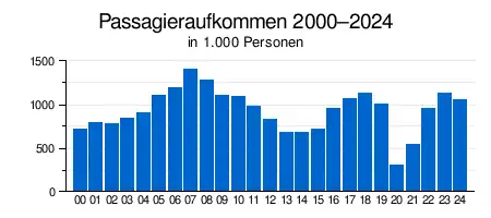 | Jahr | Fluggastaufkommen | Luftfracht (Tonnen) | Flugbewegungen |