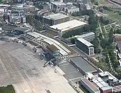 | Links der Flughafen, Mitte/rechts der Bogen der Flughafenallee | |