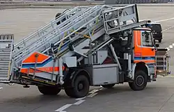 - einer Drehleiter (Länge 30 m, mit Rettungskorb).