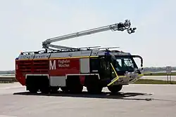 Um Zugänge ins Innere von Flugzeugen zu errichten, besitzt die Flughafenfeuerwehr München zwei Rettungstreppenfahrzeuge: