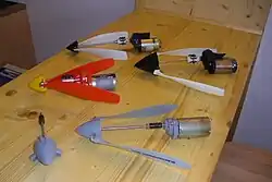 Raketenflugzeuge (oder auch Raketengleiter), umgebaute Flugzeugmodelle mit Fernsteuerung.