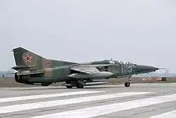 Am 21. April 1945 erfolgte die Besetzung durch die Rote Armee, die den Platz unter Einbeziehung der deutschen Struktur übernahm und bis zum Abzug der sowjetischen Truppen im Jahre 1993 nutzte. 1951/52 erfolgte ein erster Ausbau, unter anderem wurde eine befestigte Start- und Landebahn von zunächst 2050 m Länge angelegt. In den 1960er Jahren wurde der Flugplatz erweitert, die Start- und Landebahn wurde verlängert, Flugzeugbunker errichtet und die Infrastruktur vergrößert. Bis 1956 waren in Finsterwalde verschiedene Schlacht- und Bombenfliegereinheiten stationiert. Von diesem Zeitpunkt wurde das 559. Jagdbombenfliegerregiment[2] (16. Luftarmee) Hauptnutzer. Es flog hauptsächlich MiG-17- und Su-7-Jagdflugzeuge-/Jagdbomber. Später erfolgte die Umrüstung auf MiG-27.