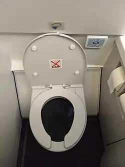Eines der ersten Flugzeuge, das mit einer Toilette ausgestattet war, war die Caproni Ca.60 von 1921, die jedoch bei ihrem zweiten Flug abstürzte und nie in Dienst gestellt wurde.[1] Das 1928 entworfene Verkehrsflugzeug Handley Page H.P.42 war mit Toiletten in der Nähe der Flugzeugmitte ausgestattet.[2]