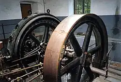 Der von Schuckert & Co. gebaute waagerechte Maschinensatz, bestehend aus Erregermaschine, Drehstromgenerator und Schwungrad wurde von einer horizontal arbeitenden Francisturbine angetrieben, welche für ein maximales Schluckvolumen von 3300 l/s bei 11 m gebaut war. Die Turbine erbrachte bei 60/min eine Leistung von 160 kW. Der Antrieb erfolgte durch ein Kammrad mit Holzzähnen (Übersetzung 2,5:1) auf eine Zwischenwelle und von dieser durch Lederriemen auf die Generatorwelle. Der Generator hatte eine Scheinleistung von 150 kVA bei 300/min. Diese erste Turbine wurde aber bereits nach wenigen Jahren durch eine waagerechte, wesentlich leistungsstärkere, Francisturbine von J.M. Voith in Heidenheim ersetzt. Bei nur noch 2350 l/s Schluckvolumen erbringt sie bei 150/min die gleiche Leistung wie die alte Turbine. Sie besaß zuerst ebenfalls Riemenantrieb, wurde aber später direkt mit den Generator gekuppelt.