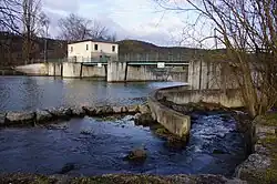 Kraftwerk mit Fischtreppe am rechten Ufer