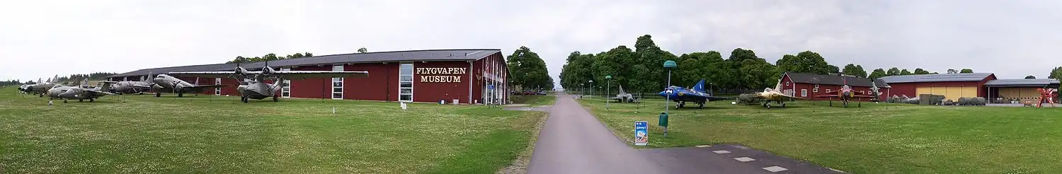 Das Flygvapenmuseum wurde 1984 eröffnet und 1989 um eine zweite Halle erweitert, dazu gibt es einen großen Außenbereich. Das Museum ist seit seinem Umbau 2010 in drei Teile gegliedert, im ersten Bereich werden Luftfahrzeuge von 1912 bis 1945 ausgestellt, die zweite Halle widmet sich der Rolle der schwedischen Luftwaffe während des Kalten Krieges. Unterhalb dieser Halle befinden sich die Überreste der Douglas DC-3 (in Schweden als Tp 79 bezeichnet), die am 13. Juni 1952 über der Ostsee von einem sowjetischen Abfangjäger vom Typ MiG-15 abgeschossen wurde und 2004 geborgen werden konnte mit einer Schilderung des Einsatzes, des Abschusses und der Rettungsversuche. Der Abschuss führte damals zur Catalina-Affäre.