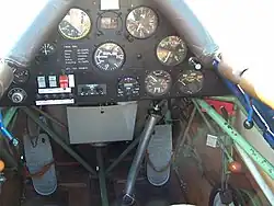 Die beiden Pilotensitze sind bei den späteren Modellen mit einer Mechanik versehen, die eine Sitzverstellung auch während des Fluges erlaubt. Die Sitzwannen sind für die Benutzung von Sitzkissenfallschirmen ausgelegt. Vor jedem Sitz ist ein Instrumentenbrett angebracht, wobei üblicherweise nur das des Piloten mit voller Instrumentierung für Funk, Flug-, Navigations- und Triebwerksüberwachung versehen ist.