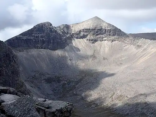 Der höchste Punkt des Berges trägt den Namen Ganu Mòr. Auf ihm befinden sich zwei Cairns. Über einen geschwungenen Nordgrat geht es hinüber zum Nordgipfel Ceann Garbh (902 Meter). Vom Hauptgipfel zieht der Südostgrat dann zum Mittelgipfel A’ Cheir Gorm (869 Meter), zur Felsnadel Lord Reay's Seat (816 Meter) und weiter zum Südgipfel An T-Sail Mhor bzw. Creag Dionard (778 Meter). Weiter gen Südosten folgt dann der Creagan Meall Horn (731 Meter), der aber bereits als eigenständiger Gipfel anzusehehen ist.