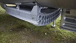 Am Flügel einer Lockheed F-94C Starfire montierter Abschussbehälter im National Museum of the United States Air Force in Dayton, Ohio