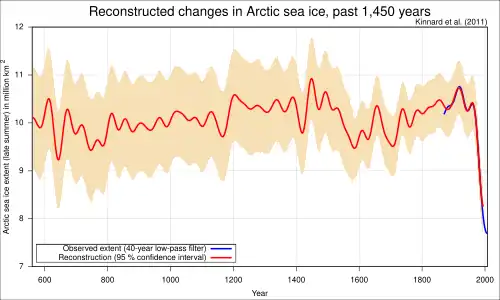 - ↑ Christophe et al. Kinnard: Reconstructed changes in Arctic sea ice over the past 1,450 years. In: Nature. 2011, doi:10.1038/nature10581.