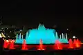Der Brunnen befindet sich am Fuße des Palau Nacional und wurde wie die meisten Gebäude in seiner Umgebung anlässlich der Weltausstellung von 1929 an der Plaça d’Espanya errichtet. Der Name ist auf das Wechselspiel von Formen (Wasser), Farben (Licht) und Ton (Musik) zurückzuführen. Auf einer Fläche von 50 × 65 Meter ergießen sich aus über 3600 Düsen rund 2600 Liter Wasser pro Sekunde.
