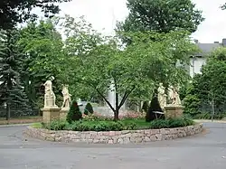 Die vier Figuren, die Moritz Ziller um das Becken herum aufstellte, hatte er bereits 1880 als Katalogware bei der Tonwarenfabrik Ernst March gekauft. Gleich 1890, mit Beginn der Anlage des Rondells, baute Wilhelm Eisold im Auftrag für den Leipziger Eduard Rost die Villa auf dem nordöstlichen Bauplatz. In dem zwischenzeitlich erweiterten Gebäude wie auch in der Nr. 18 richtete um 1907 Dr. Georg Greif sein Physikalisch-diätetisches Sanatorium für Herz-, Nerven-, Stoffwechsel-, Alkoholkranke und Erholungsbedürftige ein.[5] Ab 1892 errichteten die Gebrüder Ziller auf den beiden westlichen Bauplätzen auf eigene Kosten zwei Mietvillen, von denen die nördliche eher schlicht, die südliche recht prachtvoll ausgestattet wurde. Diese wurde ab 1948 Verlagssitz des Neumann Verlags. Ob die Nr. 18 von Eisold oder Ziller errichtet wurde, ist unklar.
