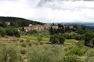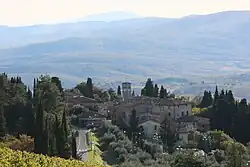 - Villa Mazzei, im 16. Jahrhundert entstandenes Gebäude, das Teile der alten Ortsbefestigung integriert hat. Der Garten entstand am Ende des 19. Jahrhunderts[4] und ist zum Teil im Stile eines Englischen Landschaftsgarten und zum Teil in dem eines italienischem gestaltet, wobei der italienische wohl zuerst entstand.[3] Die Loggia zur Gartenseite entstand 1921.[4]