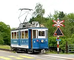 Ce 2/2 7–8 02 1900 1933 gebraucht von der Limmattal-Strassenbahn (LSB) erworben, ursprünglich LSB Ce 2/2 1 und 8, im Pendelverkehr Rehalp–Zollikerberg eingesetzt, seit 1958/1967 ausser Dienst. Kosename Lisebethli nach der LSB, die denselben Kosenamen trug.[12]