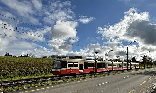 B 118–119 02 1930[46] 1962 gebraucht von den Transports publics de la région lausannoise (TL) erworben, ursprünglich auf der Überlandbahn Lausanne–Moudon eingesetzt Wagen B 118 wurde 1969 an die Trogenerbahn verkauft,[47] die schon drei ähnliche Wagen der TL besass.[46] Der B 119 stand von 2007 bis Anfang 2021 im Tram-Museum Zürich, er fährt, umgespurt auf 760 mm, seit April 2021 bei der Harbachtalbahn in Rumänien.[48]